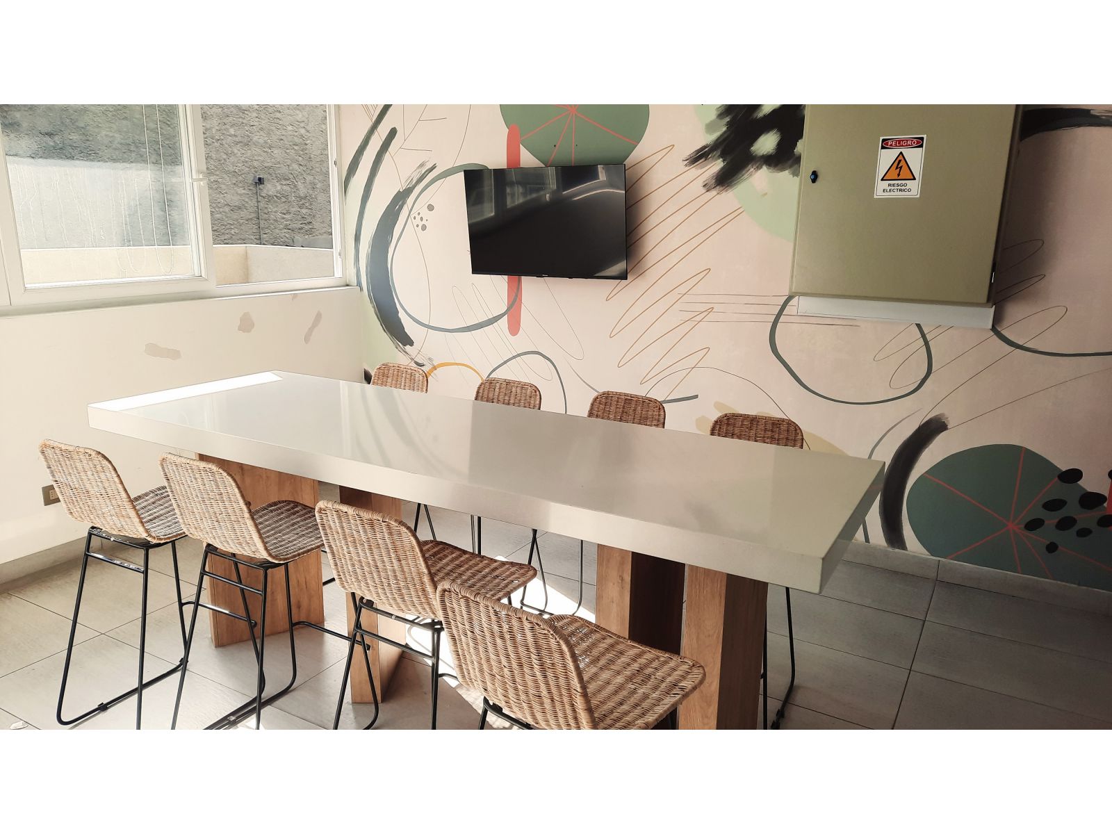 ¡¡RED GLOBAL TEAM by RED Chile VENDE Departamento Estudio en SAN MIGUEL!! EXCELENTE PRECIO DE VENTA PARA INVERSIONISTAS 18 m2 construidos + 2 m2 Terraza, 20 m2 totales. Depto Estudio y 1 baño. Tenemos 2 deptos en Venta en el Edificio: -1 Depto Tipo Estudio con su baño, Valor UF 1.690 -1 Depto Tipo Estudio con su baño y 1 Estacionamiento, Valor UF 1.940 Con la mejor conectividad de transporte público, a pasos de la estación del metro San Miguel L2, emplazado en privilegiado sector urbano de San Miguel, cercano a centros comerciales, hospitales, Gimnasio, canchas deportivas de Futbol, áreas verdes de Plazas, cercano a bancos, farmacias, supermercado, Sodimac y Universidades El edificio te acogerá con su hall de entrada y una agradable recepción. Sus modernos ascensores te llevarán a cualquiera de sus pisos en breves segundos. Cuenta con Piscina, Sala Multiuso, Quinchos, Gimnasio, Sala de Lavandería. Depto Estudio y baño con cubierta de mármol. Living con terraza. Cocina equipada con: cubierta de granito, cocina electrica de vitrocerámica, encimera, campana, y horno empotrado, con espacio refrigerador, microondas. Características: Departamento en 1° piso, edificio del año: 2022. Ventanas de Termopanel. Piso flotante. Cuenta con cortinas en el Living. Citófono. Portón eléctrico. Acceso controlado, conserje 24 horas. Estacionamientos de visitas. Gastos comunes, $40.000 app. Se aceptan mascotas
