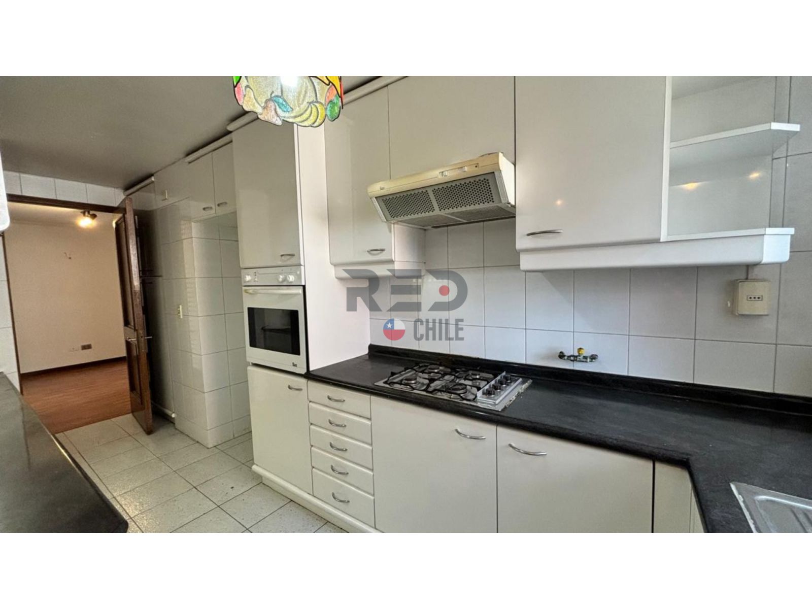 Increíble departamento en venta en el exclusivo sector de Escuela Militar, Las Condes. Si buscas comodidad, amplitud y una excelente ubicación, ¡este es el lugar ideal para ti! Detalles de la propiedad: - Superficie construida: 119.60 m² - Terrazas: 19,20 m² - Dormitorios: 3 amplios dormitorios, todos con salida a terraza cerrada, más uno de servicio o homeoffice - Baños: 3 baños completos, - Cocina: Cocina con logia, perfecta para el día a día - Dependencias de servicio: Incluye pieza y baño de servicio, lo que brinda más comodidad y versatilidad. También podría considerarse como un homeoffice. - Piscina temperada en una gran terraza panorámica en el piso 17, ideal para relajarse y disfrutar de una vista espectacular de la ciudad. - Gimnasio - Lavandería - Sala Multiuso - Estacionamiento de Visitas - Seguridad 24/7 - GGCC $300.000 app. Ubicación: El departamento está ubicado en uno de los sectores más cotizados de Las Condes, cercano a la estación de metro Escuela Militar, servicios, restaurantes, y áreas verdes. Además, el acceso es rápido y conveniente a principales avenidas y autopistas, como Kennedy, Costanera Norte, AVO. ¡Este departamento lo tiene todo! Si estás interesado en coordinar una visita o necesitas más información, estaré encantada de ayudarte.
