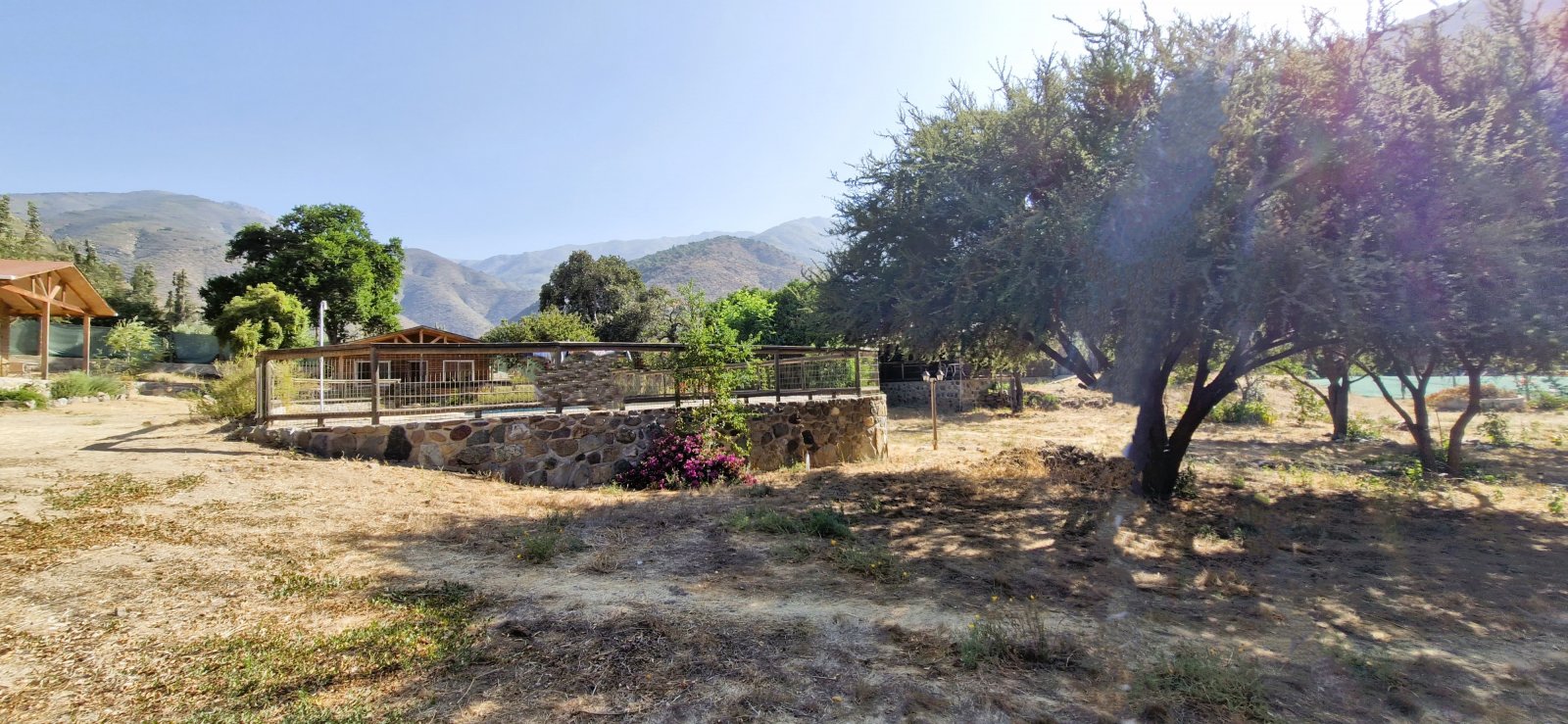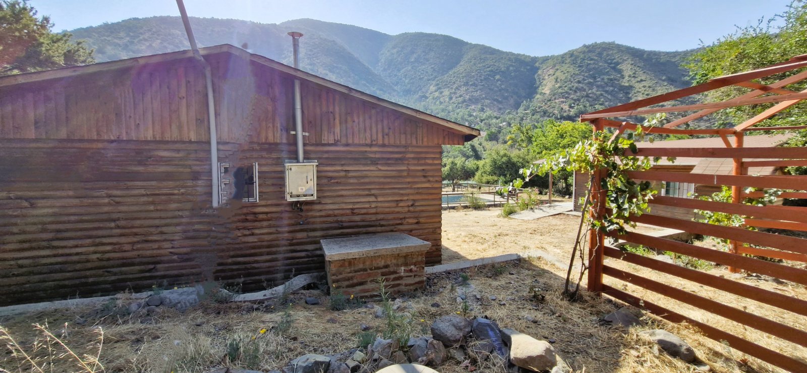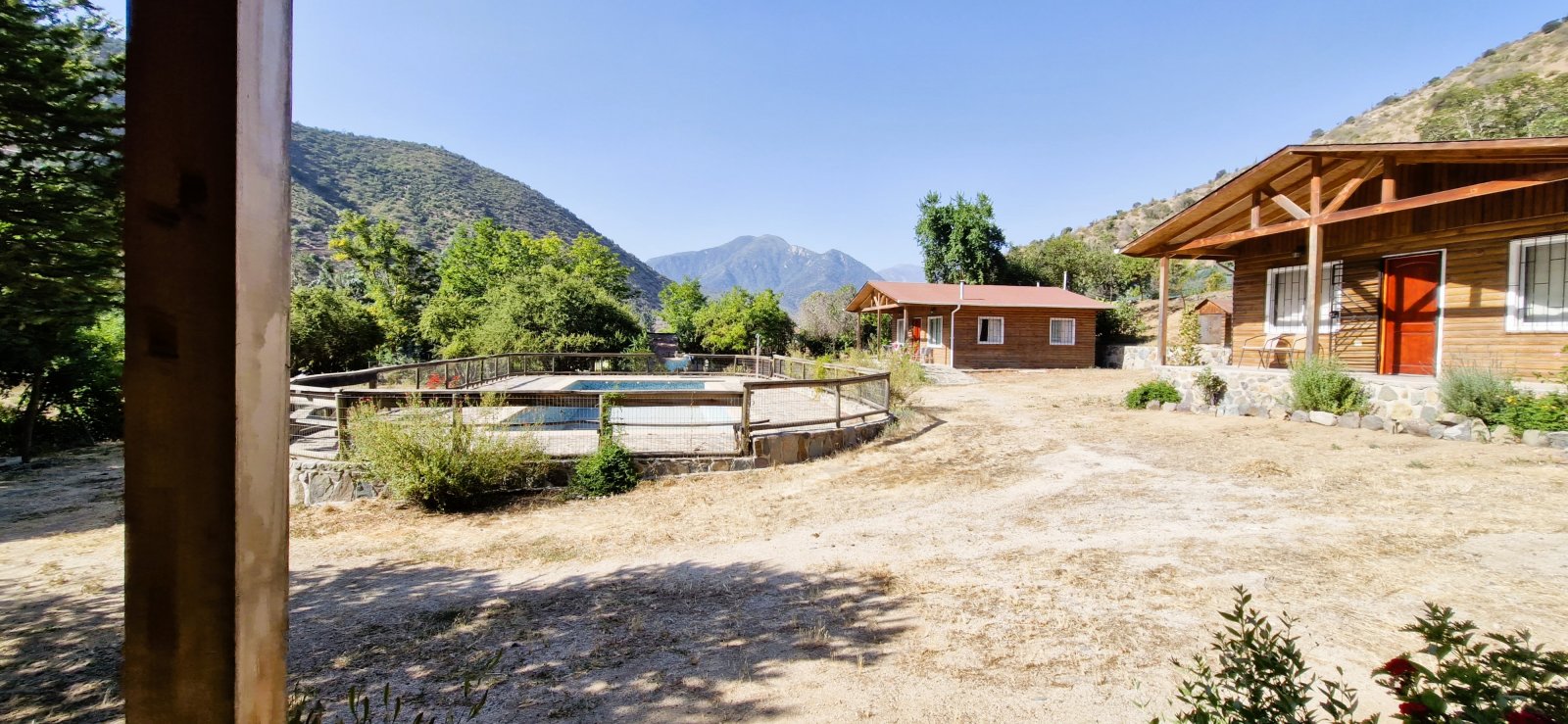 La propiedad está ubicada a pocos minutos del centro de Olmué, en Quebrada Alvarado, en Lo Castro. El terreno es de uso de suelo “otros”, que lo habilita para operaciones de turismo y otras. La casa principal y las cabañas fueron construidas en el 2014, de hermoso diseño con vigas a la vista. La casa de 130 m2., cuenta con cuatro dormitorios (uno con baño en suite), dos baños, amplio living comedor y una linda cocina de concepto abierto. La casa cuenta con cocina a gas y una cocina a leña. Esta casa en su exterior frontal tiene una linda terraza longitudinal con techo y suelo de piedra, lo que le da un aspecto de construcción montañesa rústica. Contiguo a la casa existe una hermosa mesa construida con una gran piedra laja, en un espacio especial para sentarse a leer o a meditar. Todo esto en un terreno de 4.100 m2. Las 3 cabañas son idénticas de 60 m2., cuentan con 2 dormitorios, a baño, un living comedor y cocina de concepto abierto. Todas las construcciones se venden con muebles básicos en perfecto estado (camas, camarotes, mesas, sillas, cocinas a gas (dos nuevas), cocina a leña. Una de las cabañas cuenta con un piano. Todos los muebles y piano mencionados están incluidos en el precio. Se cuenta electricidad y con agua potable proporcionada por una APR, y además se cuenta con un pozo tipo noria, de 6 m. de profundidad, cuya agua proviene de una vertiente. Para acopiar agua de reserva tenemos un estanque sobre superficie de 3.000 lts. y uno subterráneo de 14.000 lts. En el exterior, tenemos una gran piscina de 15x5 m., revestida en azulejos de loza, un quincho con parrilla y un horno de barro. Se cuenta además con una bodega de aprox. 16 m2, en la cual se tiene un sistema de bombeo de repuesto y una máquina para corte de pasto de discos, a gasolina. Finalmente, para completar la descripción, podemos indicar una gran variedad de árboles frutales y autóctonos: Mandarinos, limoneros, naranjos, manzanos, perales, almendros, durazno nectarine, chirimollos, damasco, granado, parras en una glorieta, higuera, espinos, boldos y peumos. TAMBIEN EXISTE LA OPCIÓN de adquirir esta parcela en conjunto con el terreno agrícola ubicado justo al frente, de 6,5 há, cuyo precio es de 200. M$. A mi juicio, lo mejor del lugar es el silencio y la tranquilidad. Te invito a conocer y a descontaminarte, trayendo a tu familia a vivir en este precioso y seguro lugar, cerca de Viña del Mar (40 minutos) y Santiago (1 hra. y 45 min), además puedo comentarte que Olmué es una ciudad que aún conserva sus aires de Provincia. Para más información o coordinar una visita, puedes contactar a RED EN CHILE vía whatsapp o por email.