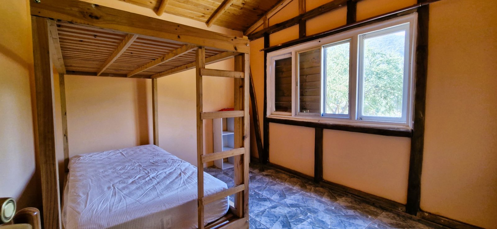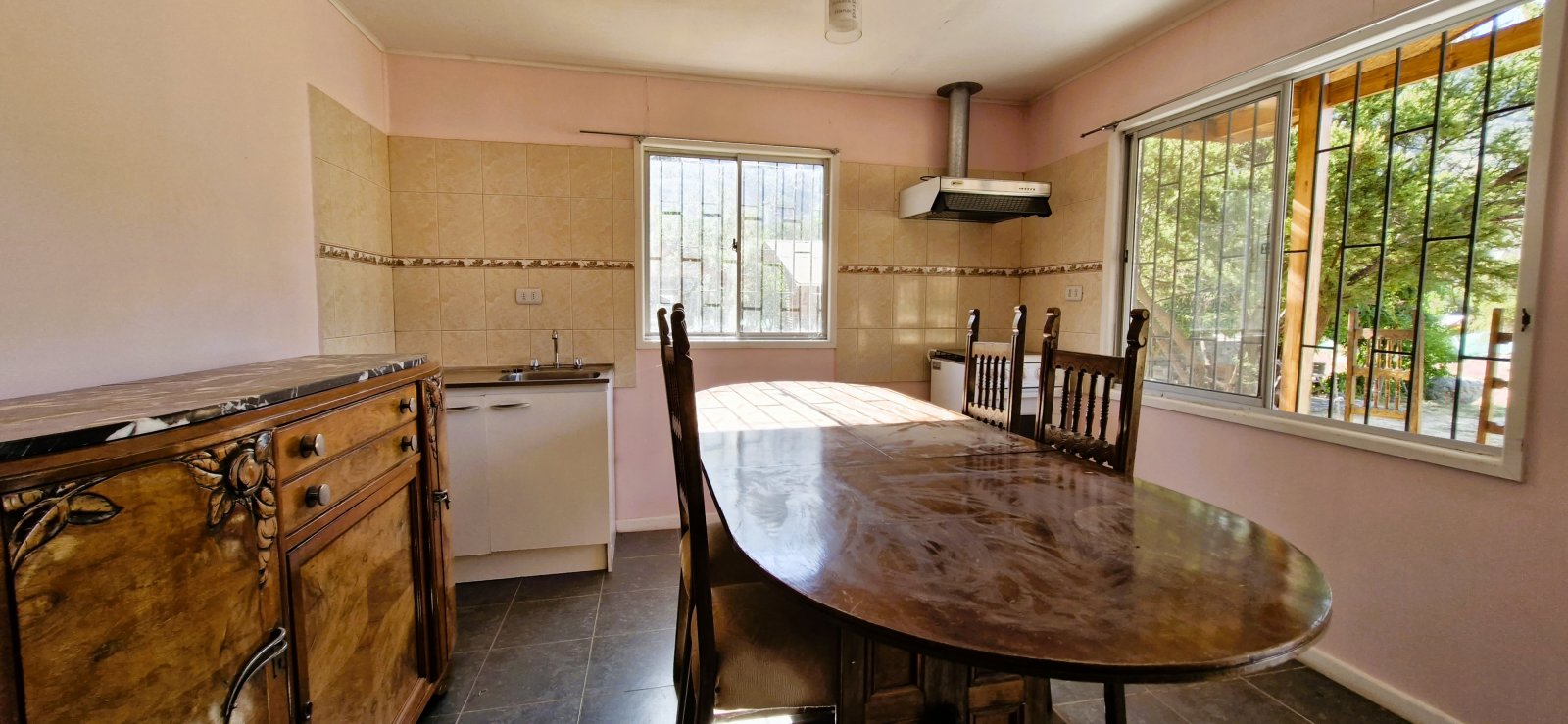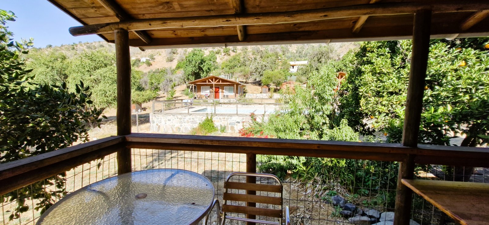La propiedad está ubicada a pocos minutos del centro de Olmué, en Quebrada Alvarado, en Lo Castro. El terreno es de uso de suelo “otros”, que lo habilita para operaciones de turismo y otras. La casa principal y las cabañas fueron construidas en el 2014, de hermoso diseño con vigas a la vista. La casa de 130 m2., cuenta con cuatro dormitorios (uno con baño en suite), dos baños, amplio living comedor y una linda cocina de concepto abierto. La casa cuenta con cocina a gas y una cocina a leña. Esta casa en su exterior frontal tiene una linda terraza longitudinal con techo y suelo de piedra, lo que le da un aspecto de construcción montañesa rústica. Contiguo a la casa existe una hermosa mesa construida con una gran piedra laja, en un espacio especial para sentarse a leer o a meditar. Todo esto en un terreno de 4.100 m2. Las 3 cabañas son idénticas de 60 m2., cuentan con 2 dormitorios, a baño, un living comedor y cocina de concepto abierto. Todas las construcciones se venden con muebles básicos en perfecto estado (camas, camarotes, mesas, sillas, cocinas a gas (dos nuevas), cocina a leña. Una de las cabañas cuenta con un piano. Todos los muebles y piano mencionados están incluidos en el precio. Se cuenta electricidad y con agua potable proporcionada por una APR, y además se cuenta con un pozo tipo noria, de 6 m. de profundidad, cuya agua proviene de una vertiente. Para acopiar agua de reserva tenemos un estanque sobre superficie de 3.000 lts. y uno subterráneo de 14.000 lts. En el exterior, tenemos una gran piscina de 15x5 m., revestida en azulejos de loza, un quincho con parrilla y un horno de barro. Se cuenta además con una bodega de aprox. 16 m2, en la cual se tiene un sistema de bombeo de repuesto y una máquina para corte de pasto de discos, a gasolina. Finalmente, para completar la descripción, podemos indicar una gran variedad de árboles frutales y autóctonos: Mandarinos, limoneros, naranjos, manzanos, perales, almendros, durazno nectarine, chirimollos, damasco, granado, parras en una glorieta, higuera, espinos, boldos y peumos. TAMBIEN EXISTE LA OPCIÓN de adquirir esta parcela en conjunto con el terreno agrícola ubicado justo al frente, de 6,5 há, cuyo precio es de 200. M$. A mi juicio, lo mejor del lugar es el silencio y la tranquilidad. Te invito a conocer y a descontaminarte, trayendo a tu familia a vivir en este precioso y seguro lugar, cerca de Viña del Mar (40 minutos) y Santiago (1 hra. y 45 min), además puedo comentarte que Olmué es una ciudad que aún conserva sus aires de Provincia. Para más información o coordinar una visita, puedes contactar a RED EN CHILE vía whatsapp o por email.