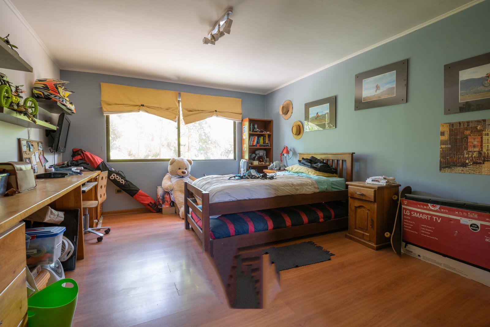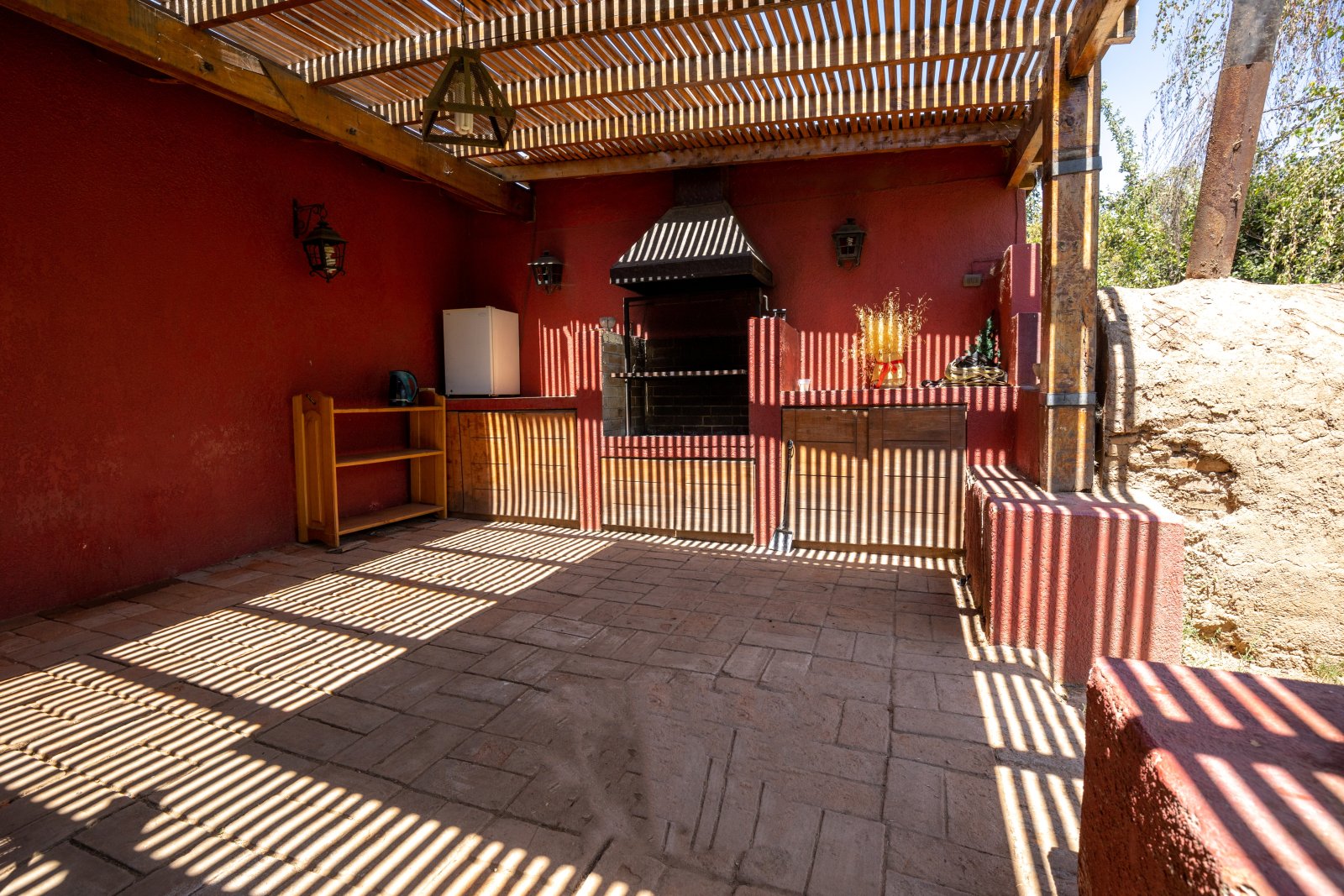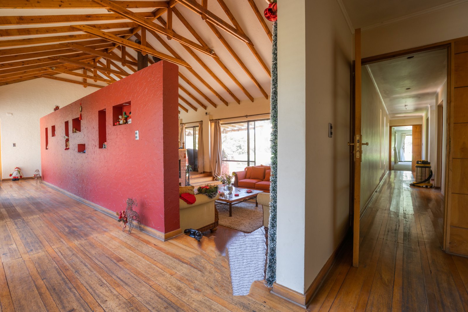 La propiedad en venta corresponde a una parcela de 5.100 Mt2 en el sector Lo Arcaya, El terreno presenta un desarrollo mixto, compuesto por una residencia principal de arquitectura exclusiva, junto a diversas edificaciones complementarias destinadas a uso comercial y habitacional, conformando un conjunto de carácter multifuncional con alto potencial. Vivienda Principal; Se trata de una construcción aislada de un piso, edificada en albañilería reforzada, con diseño arquitectónico personalizado y en buen estado de conservación. La superficie construida aproximada destinada a la vivienda es de 360 Mt2, y su distribución interior contempla: Hall de acceso, living y comedor independientes, cocina amoblada mas comedor diario, lavadero y área de servicio, sala de estar, cuatro dormitorios, dos de ellos en suite, tres baños completos, bodega, amplio antejardín con acceso vehicular para al menos 10 vehículos, patio posterior con terrazas, piscina, dos quinchos, árboles frutales y riego automático. Todos los dormitorios cuentan con closets incorporados, y el dormitorio principal dispone de walk in closet. En conjunto a la vivienda fue construida una oficina (actualmente habilitada como local comercial), ambos con permiso de edificación aprobado por 270 Mt2, pero sin recepción final (permiso en tramite). Además, existen recintos adicionales (sala de estar, dormitorio con baño y bodega aproximadamente 90 Mt2). Construcciones Comerciales (permiso en tramite por finalizar); En el antejardín del predio se emplazan diversas estructuras orientadas a uso comercial o de servicios, las cuales no cuentan con recepción municipal. Estas construcciones incluyen: • Cafetería de 15 Mt2 construidos + 80 Mt2 de terrazas techadas para atención de público • Gimnasio en planta libre de 64 Mt2 • Local de artesanía de 46 Mt2 • Galpón para hojalatería de 32 Mt2 • Área de lavado de autos techada de 24 Mt2 • Baños exteriores con 5,5 Mt2 construidos En la parte posterior del terreno se ubica un departamento independiente de 52,68 Mt2, con estar comedor, cocina abierta, un dormitorio y baño. Adicionalmente, se disponen dos cámaras de frío con superficies aproximadas de 6 Mt2 y 15 Mt2, respectivamente. Obras Complementarias y Entorno; La propiedad cuenta con una serie de obras exteriores e instalaciones complementarias, que mejoran su habitabilidad y atractivo: • Piscina de hormigón armado de 12 x 8 metros • Dos quinchos completamente habilitados • Sistema de riego automático • Jardines consolidados y árboles frutales • Cierros perimetrales con cerco vivo • Pavimentos interiores asfaltados y doble acceso vehicular Un estilo de vida rodeado de calma, espacio y comodidad, en una zona reconocida por su entorno natural y aire puro.